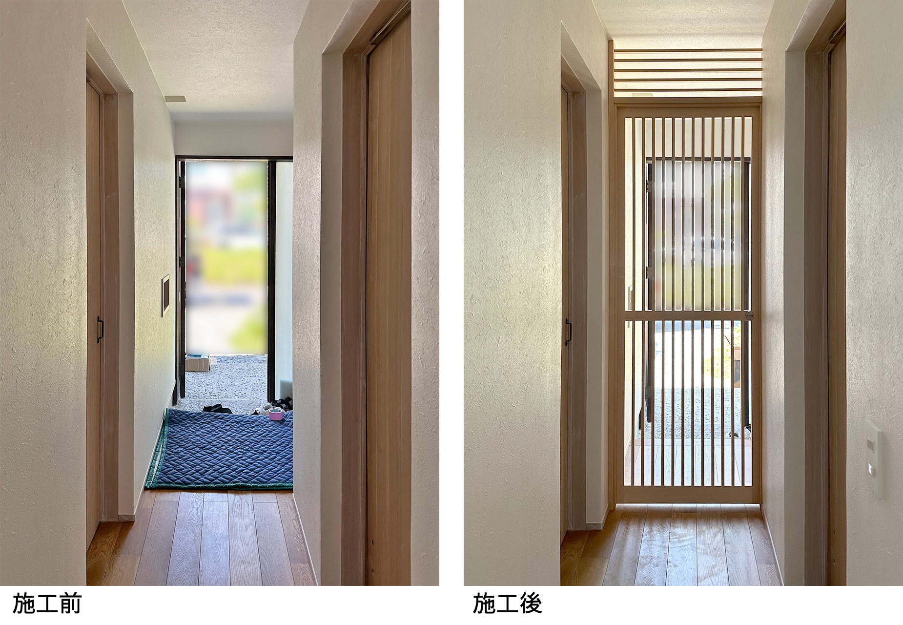 玄関からねこちゃんが出ていかないよう脱走防止扉を造作しました。
