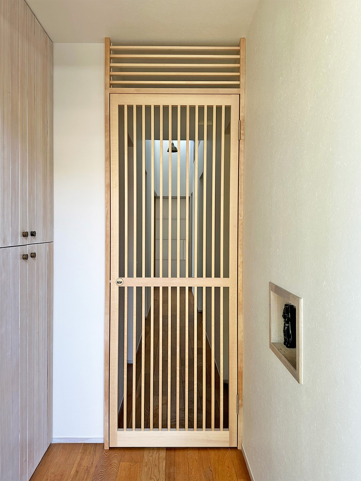 玄関からねこちゃんが出ていかないよう脱走防止扉を造作しました。