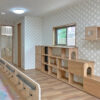 ねこちゃんが高い位置にある窓台に飛び乗ろうとして、階段横の腰壁から落下してしまったので、窓台に飛び乗れないようにしたいとのご相談でした。