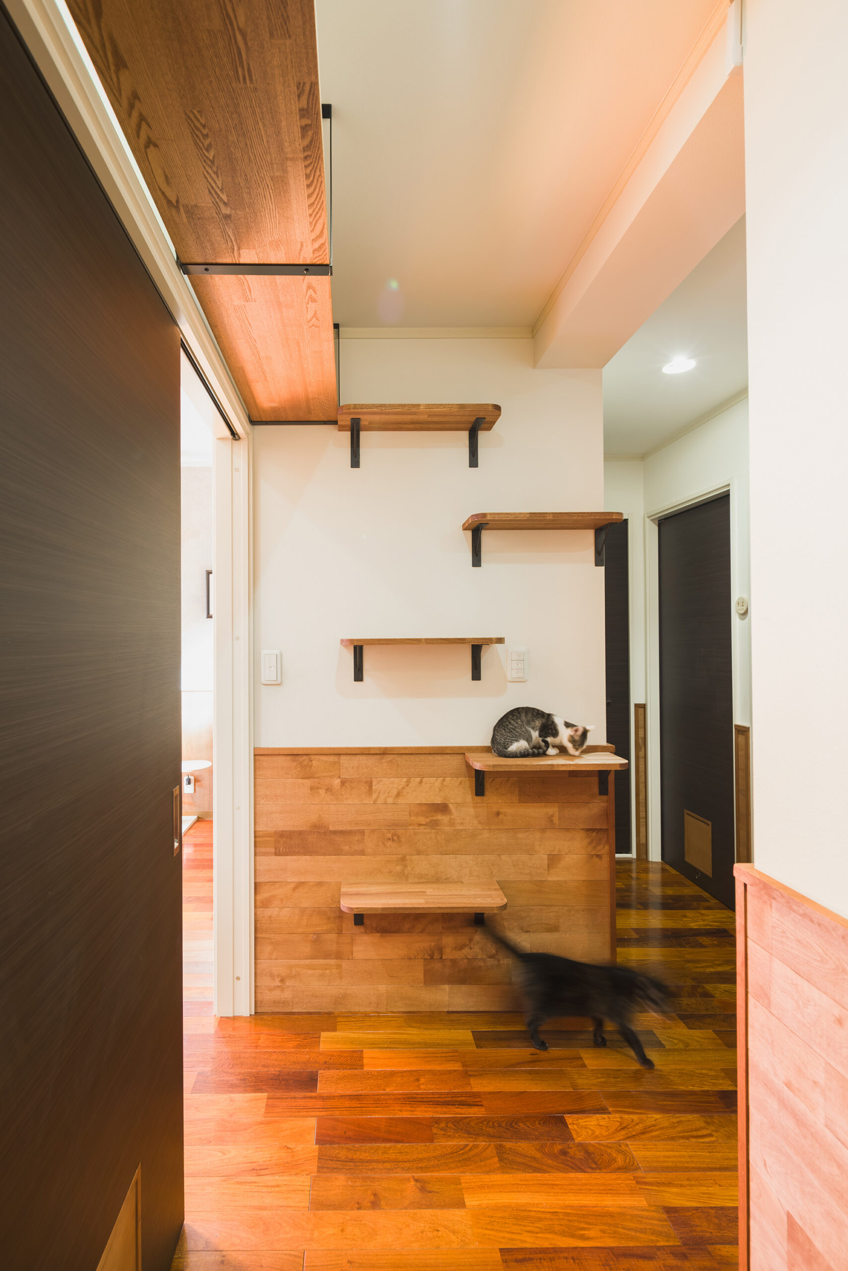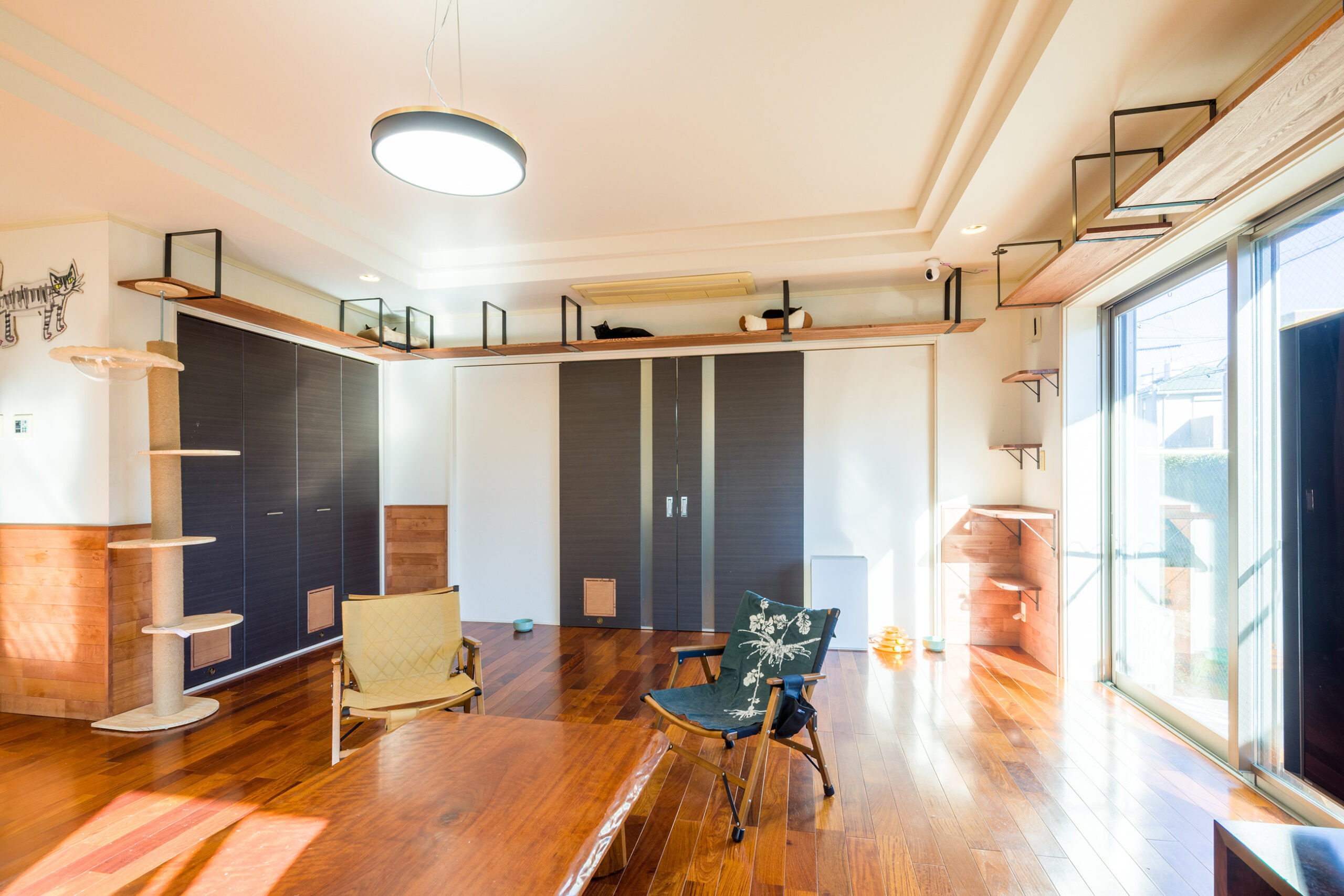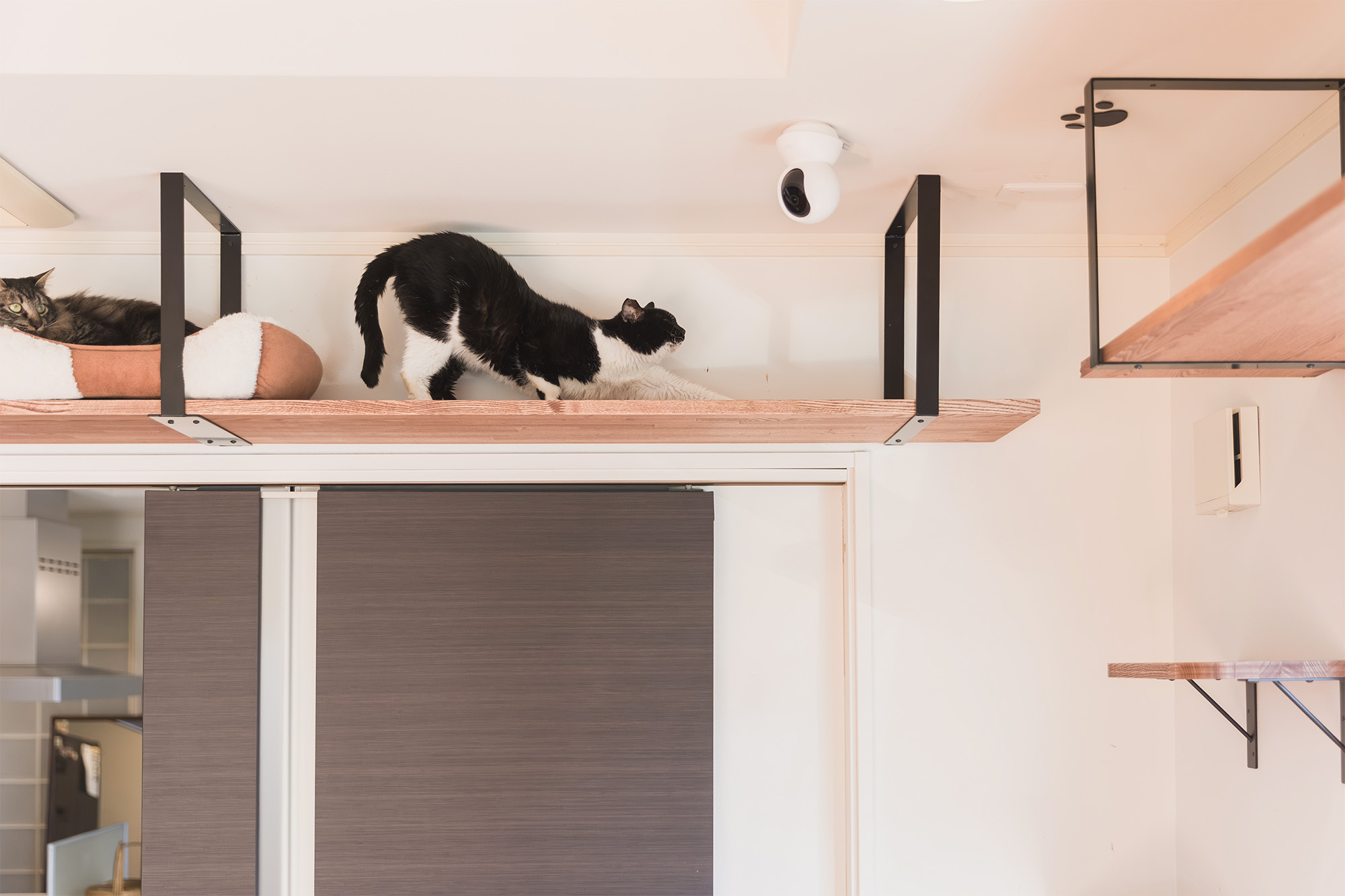 - キャットウォーク・脱走防止ドア・ねこ専用テラス(キャティオ)・フードスタンド造作・ペットドア・腰壁張り等