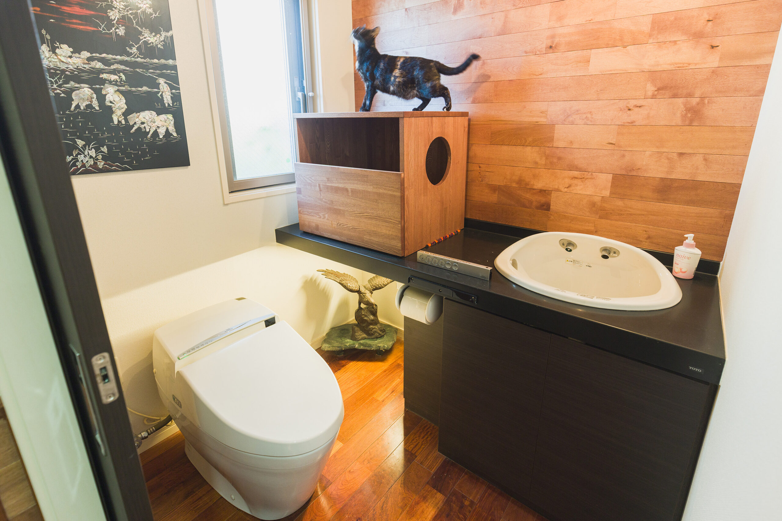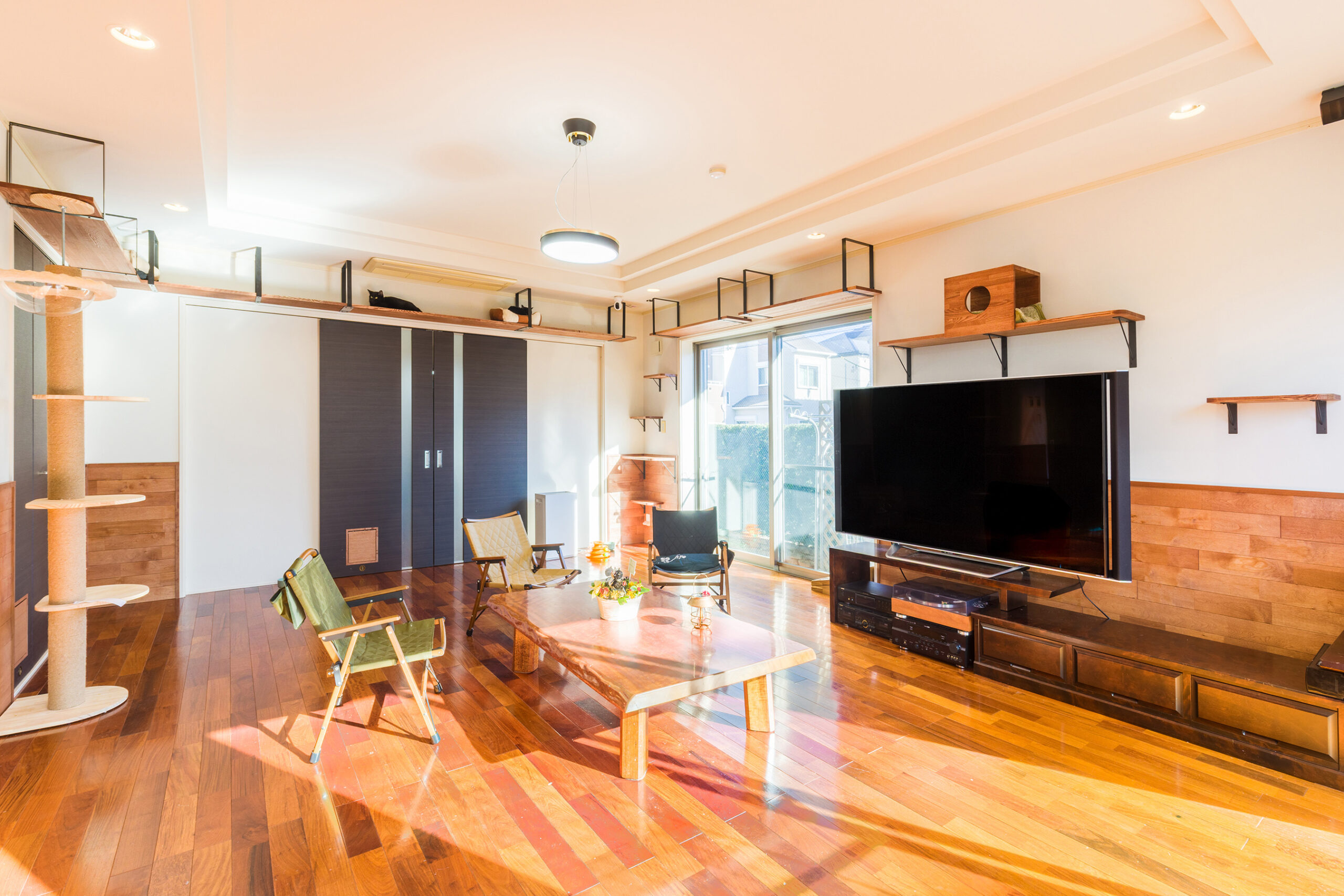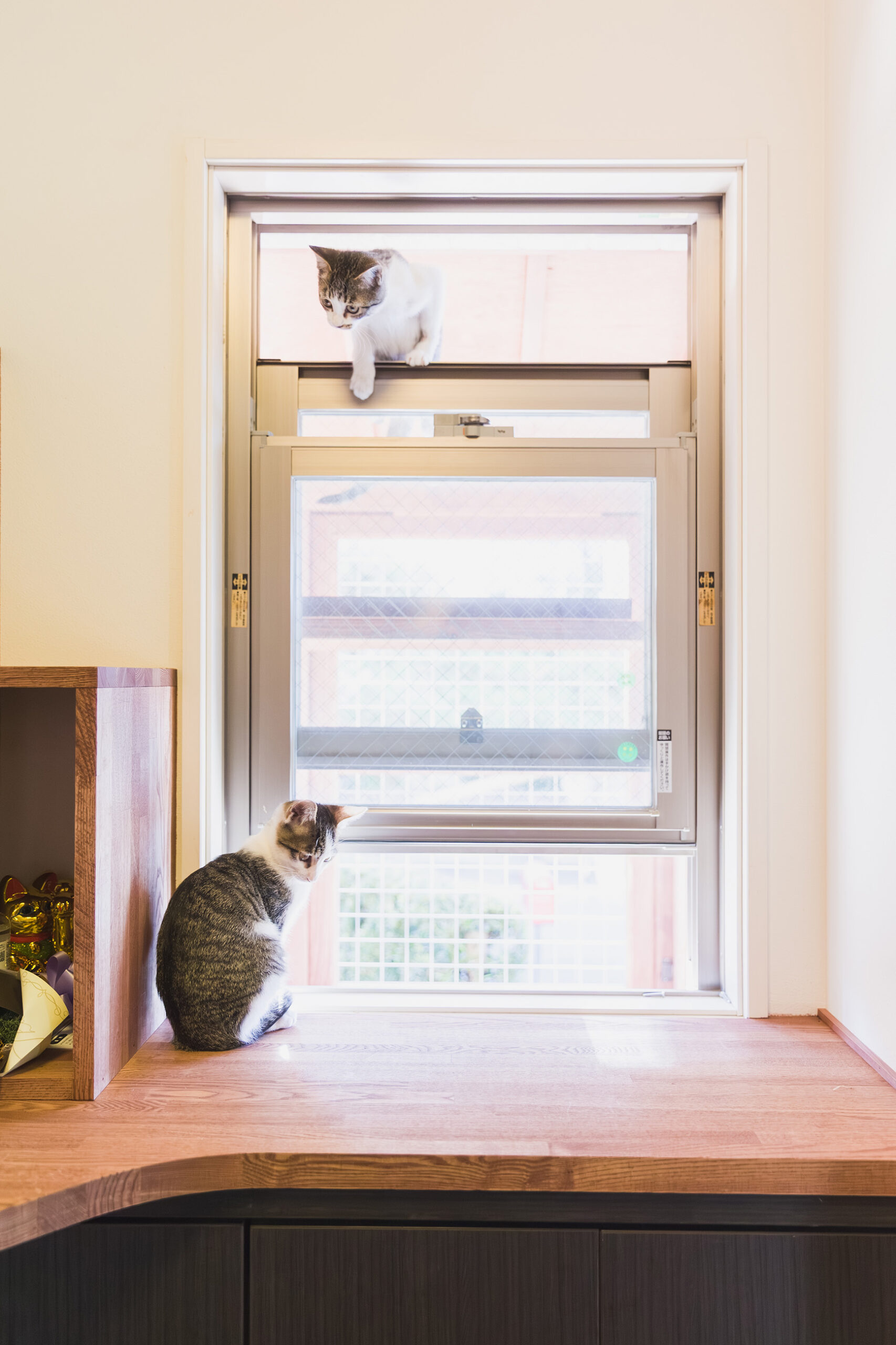 - キャットウォーク・脱走防止ドア・ねこ専用テラス(キャティオ)・フードスタンド造作・ペットドア・腰壁張り等